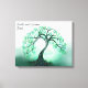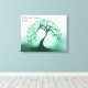Los bodas o los invitados a la fiesta pueden firmar este árbol verde de lienzo envuelto en la vida. En lugar de guardar el libro de invitados en un armario, puedes mostrar este lienzo con las firmas de toda tu familia y amigos. Perfecto keepsake. Árbol de vida en una niebla verde con la luna mirando a través. Sereno y hermoso, se mantiene para siempre en la tranquilidad.