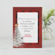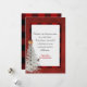 Marco de búfalo rojo y negro con pino de Navidades blancos, pájaro y campanas y cita de saludo sobre blanco suave