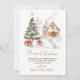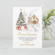Elegante y moderno guión botánico de 'Feliz Navidad' para tarjetas de vacaciones no fotográficas. Estas tarjetas de Navidades festivos muestran un impresionante diseño de acuarela con una serena escena de invierno nevada con una encantadora casa de pueblo, un bello árbol de Navidad y regalos en primer plano. El saludo "Feliz Navidad" está escrito a mano con elegancia en caligrafía dorada, añadiendo un toque sofisticado al fondo blanco limpio. El reverso está decorado con un delicado patrón dorado de copos de nieve en un entorno verde y polvoriento, que realza el ambiente festivo. Perfecto para la personalización, estas tarjetas de vacaciones personalizadas son una manera elegante de enviar cálidos deseos a la familia y amigos esta temporada de Navidades.