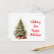 Bonito, imagen vintage de un árbol de Navidad con regalos, se muestra en esta postal para las Fiestas. Con el mensaje "Deseándote Felices Fiestas", en la parte delantera de la postal. La parte posterior está en blanco para que escriba su propio mensaje personal. ¡Una postal dulce para mantenerse en contacto con la familia y amigos a la hora del Navidad!