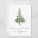 Tarjeta navideña simple y hermosa con una acuarela color árbol de Navidad con Feliz Navidad escrito en un elegante tipo de letra caligráfica. Personalizar y personaliza tu tarjeta con tu nombre y año, y tu propio mensaje personalizado en la parte posterior.