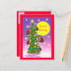 Búho lindo anidando en un hermoso árbol de Navidad.