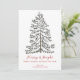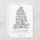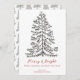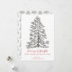 Esta célebre y elegante tarjeta blanca de vacaciones "Feliz Navidad" presenta una detallada representación de un árbol de invierno festivo, dibujado a mano con tinta negra sobre un elegante fondo blanco. En la parte trasera hay un patrón sencillo y elegante de árboles de navidad. Todo el texto es editable. Personalice con su propio saludo de vacaciones al frente, sus mensajes de vacaciones y el nombre de su familia haciendo clic en "Personalizar esta plantilla" en la página de productos.