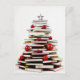 Árbol de Navidad hecho de libros, decorado con baubles rojos y una estrella en la parte superior. Foto de Nina Matthews Photography