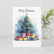 Desea a amigos y familiares una Feliz Navidad con esta tarjeta nostálgica que presenta una acuarela de un árbol de Navidad tradicional rodeado de regalos. Personalice el sentimiento y la firma.