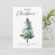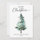 Desee a sus amigos o familia una Feliz Navidad con este elegante y minimalista árbol de navidad de invierno de color agua rodeado de fragmentos de la tarjeta de Navidades purpurinas de oro. La tarjeta plana está colocada sobre un fondo blanco que representa la nieve blanca y nítida y el dorso de la tarjeta está en un verde bosque inspirado en la naturaleza. La tarjeta se puede personalizar con la inclusión del nombre de su familia y el otro texto de diseño se puede mantener tal cual, editar o borrar.