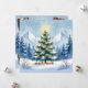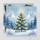 Una carta de bonitos con un ilustracion acuático de una escena invernal en las montañas con pinos decorados y festivos. En la parte posterior puede agregar su propio mensaje personalizado. Y suba cuatro fotos en el área de personalización.