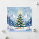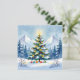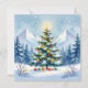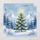 Una carta de bonitos con un ilustracion acuático de una escena invernal en las montañas con pinos decorados y festivos. En la parte posterior puede agregar su propio mensaje personalizado.