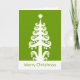 Un Navidad o tarjeta de vacaciones con diseño de árbol de Navidad. "Feliz Navidad" por delante y por dentro. También se puede cambiar el saludo.