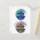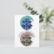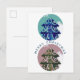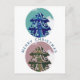 Tarjeta postal de vacaciones familiares con árbol de Navidad artístico decorado festivamente. Árboles de Navidad decorados festivamente en un marco circular, rodeados de texto de Feliz Navidad, nombre de la familia y año - personalice la tarjeta y agregue su mensaje dentro o borre.