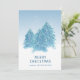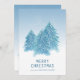 Tarjeta de vacaciones artística de Árbol de Navidad de color azul. Dibujo acuático festivo de árboles azules de Navidad con nieve y un deseo de Feliz Navidad. Personalizar el texto en la parte delantera y el mensaje en la parte posterior.