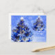 Árbol de Navidad azul, flores y pinos y feliz texto de navidad