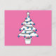 Un ilustracion de un elegante árbol blanco de Navidad de moda con abundantes bolas colgantes azules con fondo rosado. Este diseño es para gente que ama a los Navidades, dando regalos y regalos.