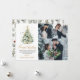 Moderna Foliage Botánico Elegante Caligrafía Guión Watercolor Árbol de Navidad 3 tarjetas de Navidades de Collage de fotos. Las tarjetas de vacaciones de este minimalista Navidad de fotos festividad simple y bonito incluyen un collage de fotos de tres (3) rejillas, árbol de navidades acuarelas con decoración de bolas de oro y confetti, un texto de saludo de "Feliz Navidad" escrito en un bonito tipo de letra de cruz con letras a mano, cruda y cruz en oro y blanco. En el fondo acuarela de invierno vegetación vegetal botánica, bayas, hojas de eucalipto, agujas de pino y ramas. Estas tarjetas de Navidades de fotos Personalizados son una buena manera de recordar a sus seres queridos que están pensando en ellas esta temporada de vacaciones de invierno.