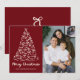 Celebra la temporada con esta tarjeta de fotos de Navidad mostrando un árbol de Navidad de color crema dibujado a mano con arcos en un cálido fondo de arándanos. "Feliz Navidad" está resaltado en escritura crema manuscrita con espacio para el nombre de tu familia a continuación. A la derecha del diseño aparece una foto vertical familiar con un diseño moderno. La parte posterior cuenta con un ilustracion de arco coordinado con espacio para tu mensaje de vacaciones, añadiendo un toque festivo.