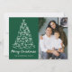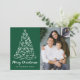 Comparte la alegría de las vacaciones con esta tarjeta de fotos de Navidad mostrando un caprichoso árbol de Navidad blanco dibujado a mano con arcos en un rico fondo verde. "Feliz Navidad" está escrito en un libreto escrito a mano con el nombre de tu familia debajo. A la derecha se muestra una foto vertical de la familia, en la que se equilibra el diseño con un toque moderno. En la parte posterior, aparece un ilustracion de arco que coincide con el de tu mensaje de vacaciones, completando el aspecto festivo.