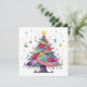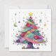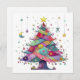 Puedes cambiar el sentimiento en la parte trasera de esta tarjeta de felicitación de Navidades llanos. El colorido y peculiar árbol de Navidad en la parte delantera seguramente difundirá la alegría de las vacaciones. Gráfico asistido por IA adquirido con uso comercial. Pintura: RedHeronLighthouse