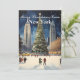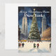 Una impresionante tarjeta de Navidad de alta calidad con un diseño clásico de cartel de viaje vintage del árbol de Navidad del Centro Rockefeller y pista de hielo. La forma perfecta de enviar elegantes deseos navideños. Ideal para tarjetas personales o corporativas. Ideal para neoyorquinos, viajeros o fanáticos del arte clásico americano.