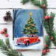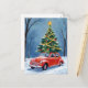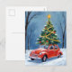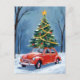 Tarjeta Postal de Navidad con Árbol de Navidad y Coche Antiguo Rojo