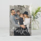 Esta tarjeta plana de doble cara de Feliz Navidad incluye caligrafía de escritura moderna y un collage de fotos de árbol de Navidad en la parte posterior. Inserta tus fotos favoritas, añade un toque personal con tu propio mensaje de corazón y personalizar a tu gusto. Fotos de prostooleh / Freepik.