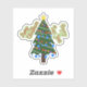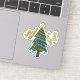 Pegatina soltero Feliz Navidad y un árbol de Navidad de Año Nuevo feliz con ornamentos.