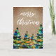 Rustic Watercolor Christmas Tree Snowflakes Holiday Card. Fondo rústico beige y colorido árbol de Navidad. Puede agregar su propio mensaje dentro de la tarjeta o borrarlo.