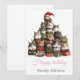 Adorable tarjeta de Navidad con gatos lindos apilados como un árbol. Perfecta para enviar cálidos deseos de vacaciones a familiares y amigos.
