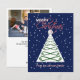 Esta tarjeta de navidades de personalizable completo tiene un diseño divertido de un árbol de navidad hecho de clubs de golf, coronado con una pelota de golf blanca. El fondo es azul oscuro, con una dispersión de nieve que cae. Agregue su nombre u otro texto en la parte delantera para personalizar el diseño. En la parte de atrás, suba tu propia foto y edita el mensaje: "Que el año por venir esté lleno de amor, alegría y felicidad... y golf!" [Foto de portaobjetos © Storytree Studios, Stanford, CA]