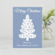 Comparte la alegría de las vacaciones con esta elegante y polvorienta escritura azul manuscrita de la tarjeta navideña. El diseño moderno de un árbol de caligrafía en suaves tonos azules crea una moda, un aspecto atemporal, ideal para enviar cálidos deseos a la familia, amigos o clientes. Personaliza para un elegante y sincero saludo de vacaciones.