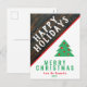 Tarjeta Postal de Navidad de Madera Rústica con Nombre Rojo Navidad Fiesta. Tarjeta postal de Navidad rústica con tipografía de Felices Fiestas y Feliz Navidad, nombre de la familia y año - personalice con el nombre de su familia y año. Colores festivos en verde, rojo y blanco con copos de nieve y el fondo es de madera oscura rústica. Árbol de Navidad simple. Gran tarjeta postal de Navidad de fiesta para su familia y amigos.