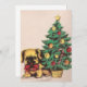 Navidades retro vintage tarjeta de vacaciones con un perro lindo y un árbol de Navidad en ella.