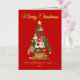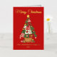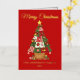 Elegante tarjeta de vacaciones sin foto con un árbol de Navidad festivo Patchwork adornado con adornos y rodeado de regalos envueltos. Personalice la tarjeta agregando un saludo personalizado, su apellido y el año con letras de Relieve metalizado dorado. Agregue un mensaje personalizado al interior de la tarjeta o deje en blanco para escribir el suyo propio. La parte posterior del Relieve metalizado dorado Patchwork tarjeta de árbol de Navidad tiene un fondo rojo