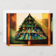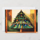 Esta es una tarjeta de Navidad alegre y distintiva para un mensaje rápido de alegría y júbilo que celebra las festividades de la época navideña. Happy Modern Holiday Christmas Tree desea felicitaciones de Navidad esperanzadoras y felices para levantar el ánimo. Creado utilizando mi obra de arte de un árbol de Navidad en acuarela más una obra de arte digital que hice de una estantería llena de libros combinados en contenido generativo de Ai para este increíble diseño nuevo en un estilo completamente nuevo de mi estudio. Una tarjeta de árbol de Navidad con un aspecto moderno de las fiestas en esta temporada de deseos festivos de Navidad. Obra original, dibujo, pintura, arte digital mezclado con IA por CricketDiane 2025 y Cricket House Studios Art and Design.