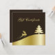 Elegante ilustracion de Navidades dorados con una silueta dorada de reno y árbol con saludo de Feliz Navidad con fondo marrón.