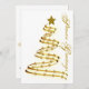 Esta tarjeta de Navidad presenta un esquema de árbol de Navidad dorado y artístico con estrellas y un Feliz Navidad vertical a lo largo del borde derecho. Rellene los campos de texto del mensaje en el reverso, elimine el texto o haga clic en personalizar para seleccionar un estilo de letra, tamaño y color que le guste.