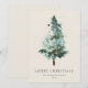 Desea una feliz Navidad a amigos y familiares con estas tarjetas de felicitación minimalistas de árbol de Navidad con acuarela. Las tarjetas se pueden personalizar con la inclusión de un nombre de familia y año. El árbol de Navidad tiene un toque de brillo con la inclusión de purpurina plateada. La escena recuerda a un bosque invernal simple y elegante. El fondo es de color crema blanco y este color también está en la parte posterior. La parte posterior se ha dejado en blanco a propósito para que puedas incluir tu propio mensaje escrito a mano.