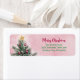 Un bonito pino verde en el bosque está vestido de Navidades rosas. ¿Quién imaginaría este mágico espectáculo en la nieve? Por supuesto, este maravilloso árbol de vacaciones debe aparecer con un glorioso fondo rosado y una estrella amarilla cuando caiga la nieve. Nuestra escena imaginaria es de un diseño de acuarela vintage y viene con el saludo, "Feliz Navidad" en texto rosa que puede ser editado. Asegúrese de cambiar los nombres y la dirección de ejemplo a los que desee en esta etiqueta de dirección de devolución.