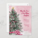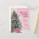 En el bosque hay un bonito pino verde, adornado con Navidades rosados, baubles, poinsettia y cinta, y una encantadora estrella amarilla encima. ¿Quién imaginaría esto en la ladera de las nevadas? Por supuesto, este mágico árbol debe aparecer con un glorioso fondo rosado en medio de la caída de la nieve. Nuestra escena imaginaria en esta postal es de una acuarela vintage y tiene los saludos, "Que tengas una feliz Navidad" y "Deseándote una temporada de alegría" en texto rosa. Se puede cambiar todo el texto. Asegúrese de editar los nombres de ejemplo y la fecha a los que elija.