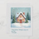 La imagen muestra una casa de Navidades bellamente decorada, decorada con luces brillantes. La parte superior de la tarjeta dice claramente "¡Feliz Navidad!" en un estilo caligráfico, añadiendo un encanto especial y un humor alegre. Imagen ideal para tarjetas de Navidad o decoración de vacaciones.