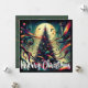Tarjeta de vacaciones de árbol de Navidad gótico a la luz de la luna