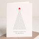 Sencilla y elegante tarjeta minimalista plegada de vacaciones con un "scandi" escandinavo árbol de navidad mínimo con una simple estrella roja. El diseño presenta una moderna tipografía minimalista que puede ser fácilmente personalizada con su propio saludo, apellido y año, perfecto para la temporada festiva. navidades. minimalista.