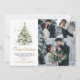Moderna y elegante caligrafía Script Watercolor Árbol de Navidad 3 tarjetas de Navidades de Collage de fotos. Las tarjetas de vacaciones de este minimalista Navidad de fotos festividad simple y bonito incluyen un collage de fotos de tres (3) rejillas, árbol de navidades acuarelas con decoración de bolas de oro y confetti, un texto de saludo de "Feliz Navidad" escrito en un bonito tipo de letra de cruz con letras a mano, cruda y cruz en oro y blanco. En el lado inverso nieve dorada purpurina o confeti dorado brillante sobre un polvoriento fondo verde. Estas tarjetas de Navidades de fotos Personalizados son una buena manera de recordar a sus seres queridos que están pensando en ellas esta temporada de vacaciones de invierno.