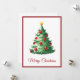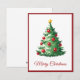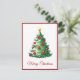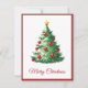 Lleve un toque de arte a sus saludos navideños con esta elegante tarjeta de Navidad que presenta un pino coronado con una estrella dorada. Los adornos rojos llamativos y el borde rojo coordinado hacen que el diseño sea especialmente colorido y festivo, mientras que la textura de pincelada suave añade un toque rústico y elegante.