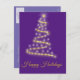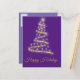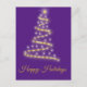 Postal navideña moderna y artística en dorado y morado. Presenta un diseño de árbol de Navidad que se expresa en una línea abstracta de flujo hermoso con brillo. Viene con un guión similar, elegante. Personalizar agregando su propio mensaje /image/logo. Este artículo es parte de una colección de vacaciones "Modern Xmas Fiesta". _____________ Diseño de Alma Wad y Merlin2525.