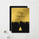 Un hermoso diseño moderno de tarjetas de Navidades que se puede personalizar con tu texto. El diseño muestra oro goteando en un fondo negro moderno con un árbol de Navidad dorado. Letra de guión usada para las palabras "Feliz Navidad".