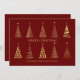 Esta hermosa y elegante tarjeta de vacaciones de Navidades rojos y dorados cuenta con 10 diferentes árboles de navidad modernos en oro falso cada uno con una estrella Navidad encima. El saludo y el mensaje/nombre de la familia se pueden personalizar fácilmente para una tarjeta de vacaciones única y personal que destaca entre la multitud