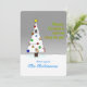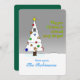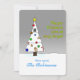 Desea a tus seres queridos una Navidad blanca y nevada con esta tarjeta ilustrada y personalizable. Dibujé y coloreé el fondo, incluyendo el árbol de Navidad y los adornos, usando Krita y agregué el cielo gris usando Photoshop.