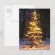 Árbol de navidad nevoso iluminado en las maderas en la noche