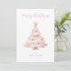 Envía alegría navideña con un toque de encanto femenino con esta tarjeta de vacaciones rosada de árbol de Navidad. Con un árbol de Navidad rosa pastel con estrellas doradas. Perfecto para los amantes de los detalles suaves y elegantes, esta tarjeta captura la magia de los Navidades de una manera fresca y elegante. Personalízalo con tu saludo y nombre para hacerlo único tuyo.