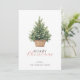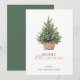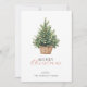 Simple tarjeta de felicitación rústica que presenta un árbol de acuarela en una cesta con decoración. Combinada con tipografía moderna y de escritura
